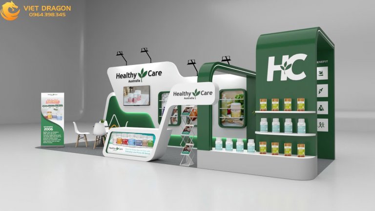 Healthy Care – thương hiệu nổi tiếng về các sản phẩm chăm sóc sức khỏe tự nhiên – đã tin tưởng lựa chọn Công ty Viet Dragon làm đơn vị thiết kế và thi công gian hàng tại sự kiện này. Viet Dragon đã mang đến một giải pháp gian hàng hoàn hảo, từ ý tưởng thiết kế, lựa chọn vật liệu đến thi công hoàn thiện, giúp Healthy Care nổi bật giữa hàng trăm thương hiệu.