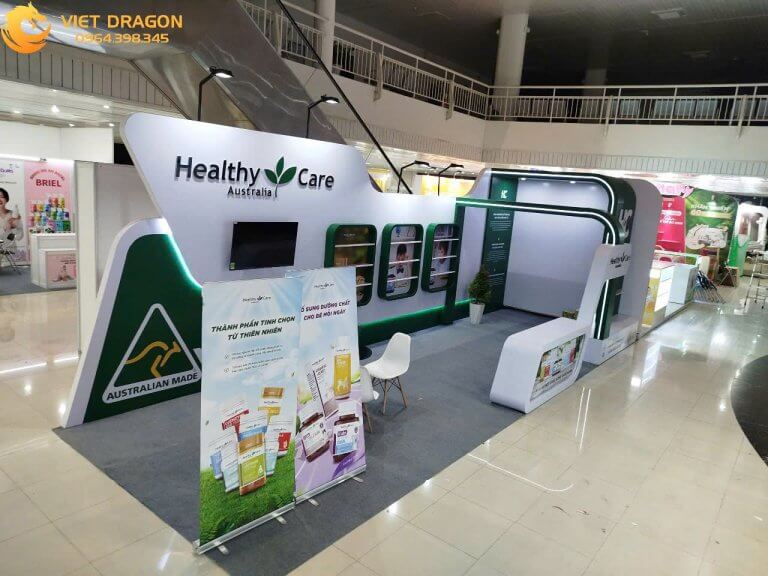 Healthy Care – thương hiệu nổi tiếng về các sản phẩm chăm sóc sức khỏe tự nhiên – đã tin tưởng lựa chọn Công ty Viet Dragon làm đơn vị thiết kế và thi công gian hàng tại sự kiện này. Viet Dragon đã mang đến một giải pháp gian hàng hoàn hảo, từ ý tưởng thiết kế, lựa chọn vật liệu đến thi công hoàn thiện, giúp Healthy Care nổi bật giữa hàng trăm thương hiệu.
